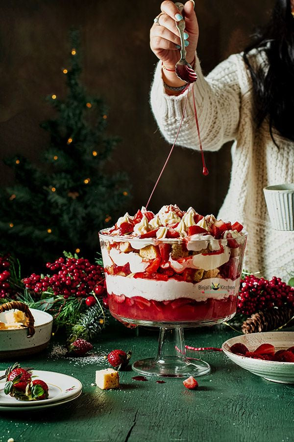Who doesn't all the beautiful desserts your loved ones bring to the holidays? This one is a favorite at my family's dessert table. Warm pound cake and whipped cream soaked and smothered in fresh strawberries.